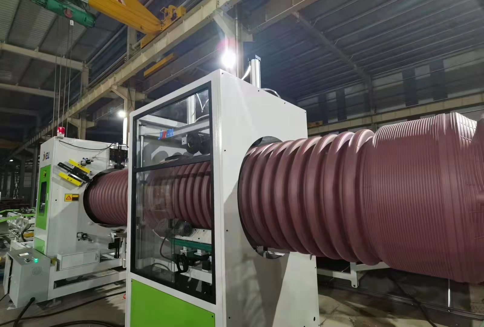 生產出的塑鋼纏繞管的鋼帶不易腐蝕,鋼帶頂部具有加厚的保護層,加強筋不容易被傾倒,接縫連接可靠牢固,管材軸向的抗拉強度高,使用過程中不容易滲漏,并且申請了專利保護。